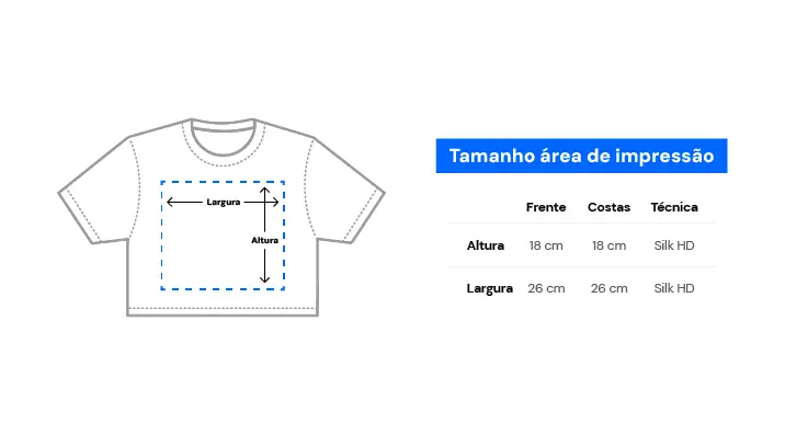 Cores do produto: Como cada tela de computador ou celular tem seu próprio jeito de mostrar cores, então a cor da sua camiseta e da estampa pode ser um pouco diferente do que você viu online.